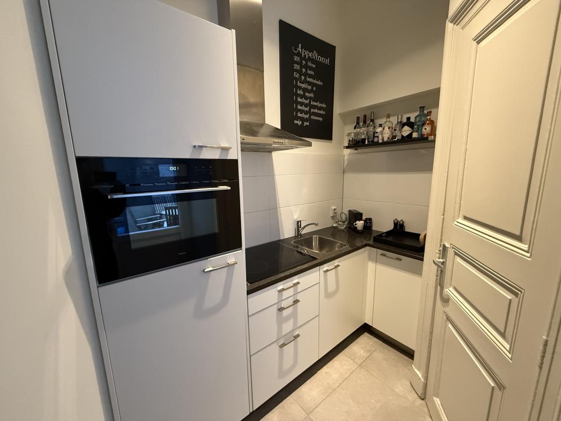 - De keuken is voorzien van een inductie kookplaat, afzuigkap, koelkast en combimagnetron;