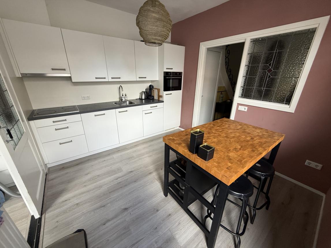 - Keuken (11m2) met authentieke portvisé deuren. De keuken is van alle gemakken voorzien, o.a. inductiekookplaat, afzuigkap, vaatwasser en koelkast.