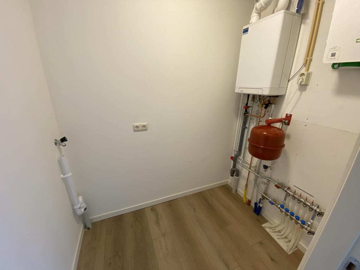 This apartment is located on the 2nd floor and has a spacious living room with an open kitchen. The apartment has a bedroom, bathroom and a storage room. This apartment has also a private roof terrace of 20 m2.