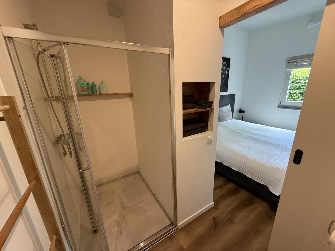 Deze woning is volledig gemeubileerd en v.z.v. airco. De woonkamer met open keuken (25m2) heeft toegang tot de tuin. De keuken is o.a. voorzien van een koelkast, combi-magnetron en combi-wasmachine/ droger. De woning heeft 1 slaapkamer (9m2) en een en-suite badkamer (4 m2) met inloopdouche. De woning beschikt over ruime parkeergelegenheid en een gedeelde overdekte fietsenstalling.