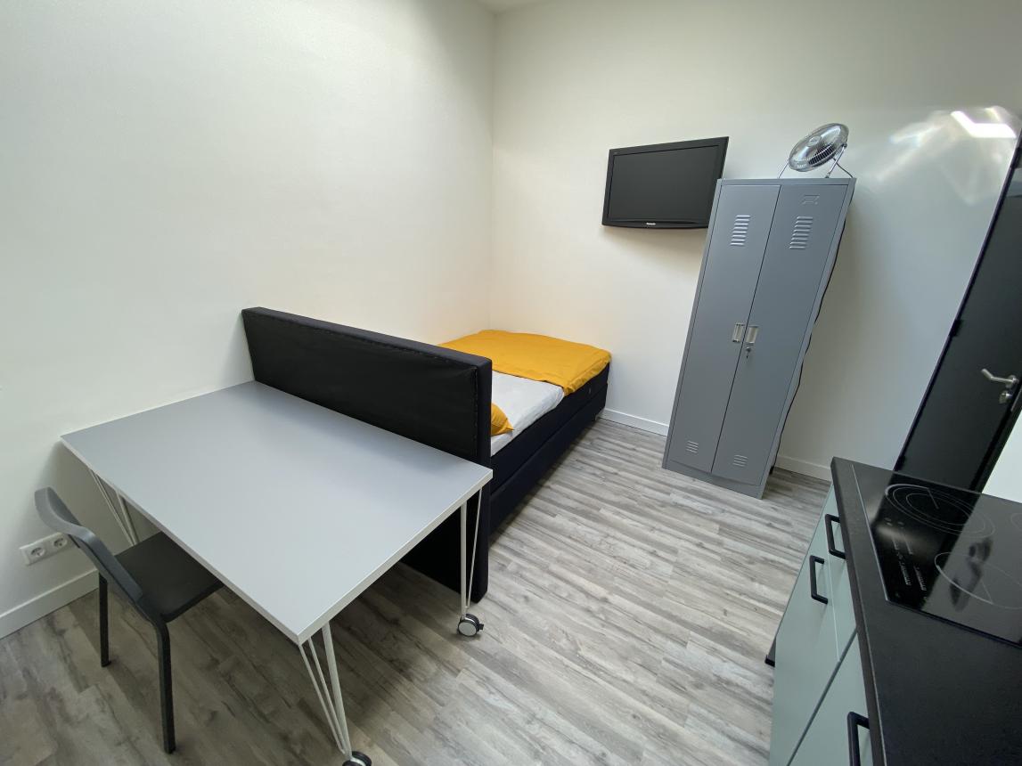 Op de eerste verdieping ligt deze mooie, net opgeleverde studio met badkamer met douche. De studio wordt gemeubileerd opgeleverd. Prijs is inclusief G/W/E, t.v. en internet.